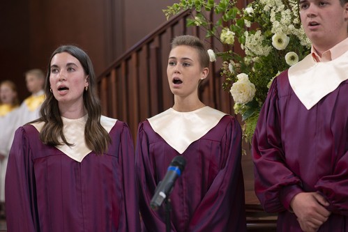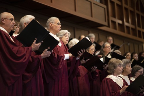 Each Sunday, our choir sings an anthem during the morning worship. The choir is located in the rear balcony of our Sanctuary. The words of the anthem are printed in the bulletin. The congregation is thereby focused on the text of the anthem, rather than on the performers. We strive for excellence both in the selection of anthems, as well as the presentation on Sunday morning. And yes, the choir is performing, and their audience is their God, creator of all that is!